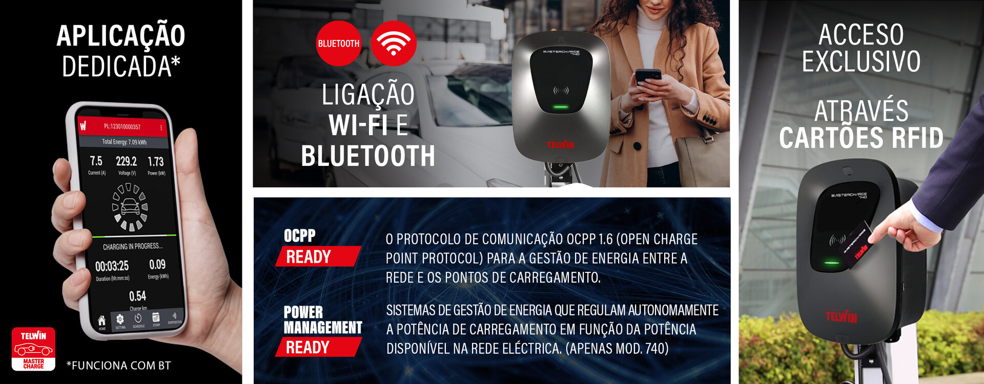 - CONTROLO: monitorização do consumo, agendamento de carregamento, acesso por cartão ou App.