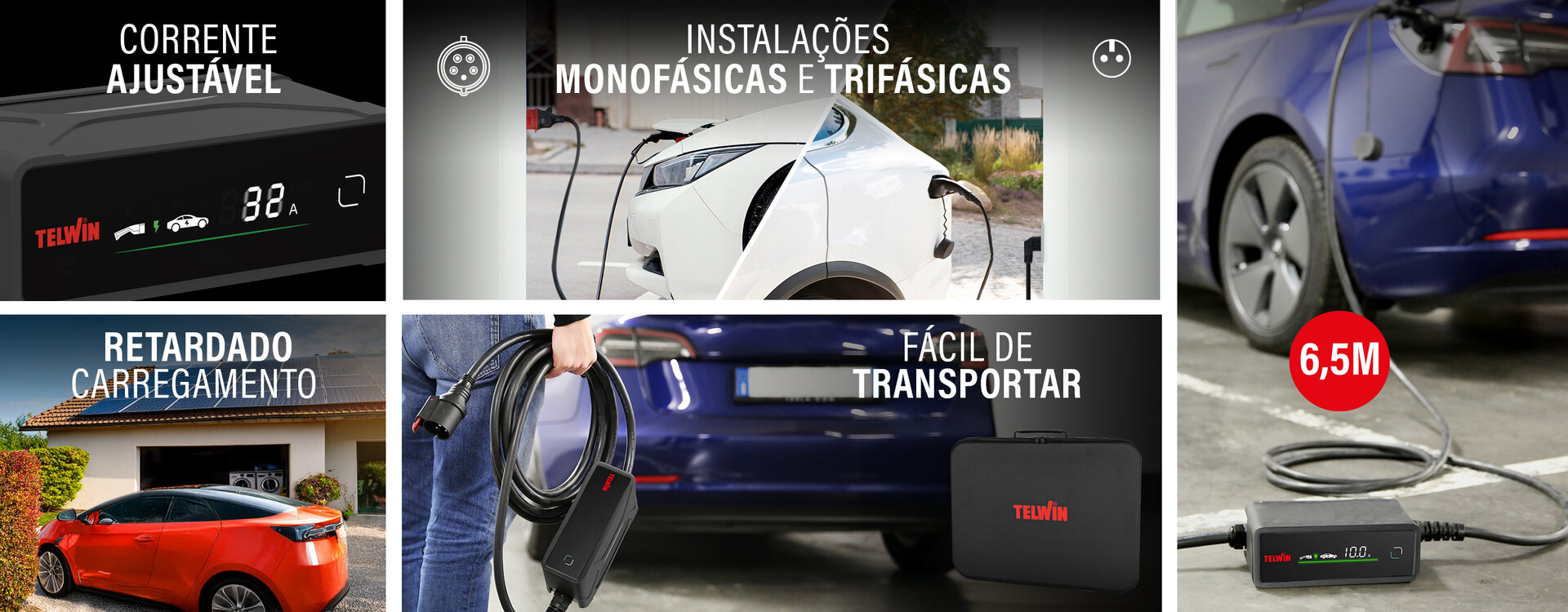 - FLEXIBILIDADE: soluções fixas (wallbox) ou móveis (portátil), consoante o uso.