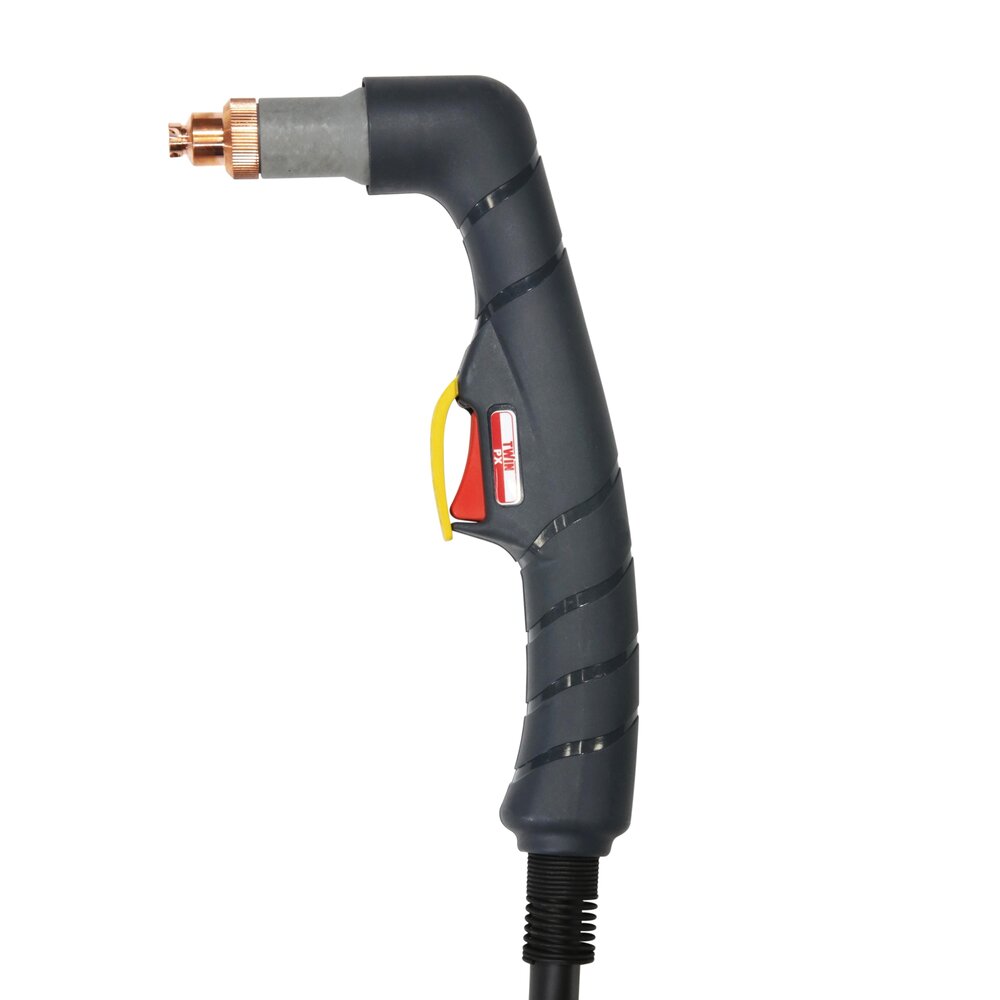 Tocha PX para sistema manual de corte a plasma equipado com cabo de 6 metros com ligação de tipo EURO. A tocha trabalha com uma corrente máxima de 125A@60% / 90A@100% e consegue cortar espessuras até 50 mm. Equipada com sistema de arrefecimento a ar, requer um fornecimento de ar comprimido com 5 bar de pressão e capacidade de 305 litros/min. Proteção do gatilho contra ignição acidental.